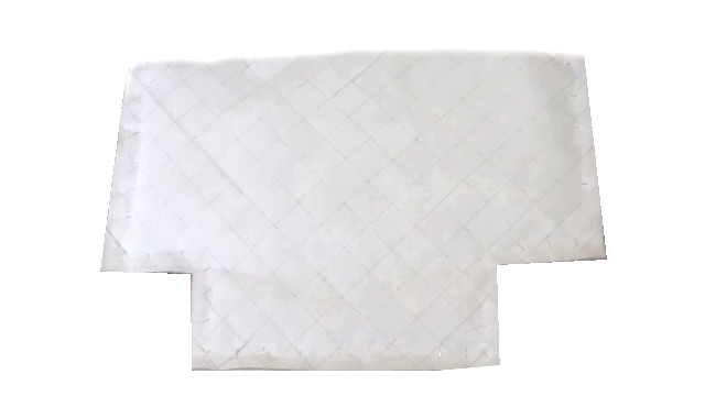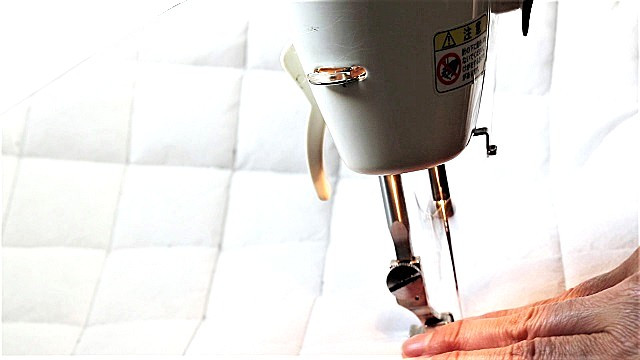 このたびは、ナップサックの新しい寸法での第一回目の製作であり、表地にはダイヤキルト、裏地にはボックスキルトをかけるという両面キルト仕様で作っていきます。