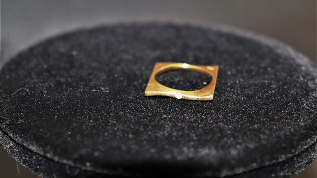 平打ちリングは、こうした正面からの写真でもわかるように、指に付けた遠目に映る形は長方形、つまり四角フォルム。