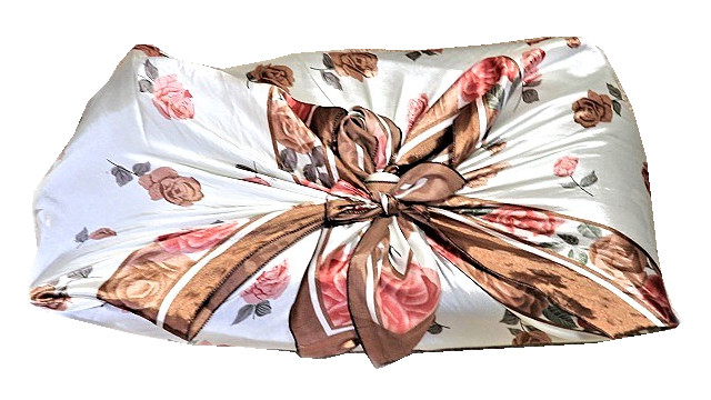 こうして、超大判のスカーフ(縦と横が1m近くあるもの)が風呂敷としては望ましいサイズです。